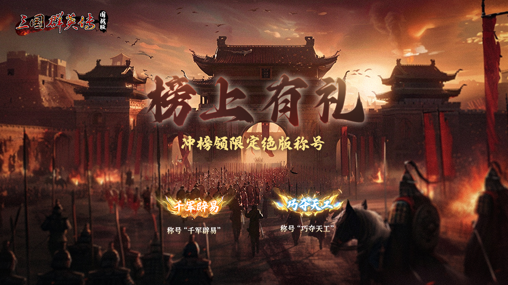 【S8问鼎八荒】新服开启之际即将会同步开启游戏内排行榜活动,排行榜将会以士兵总战力、总加持等级作为依据分别进行排名。最终结算时排行越高的主公将会获得越丰富的奖励,各排行榜排行第一的主公还将获取绝版限定称号!