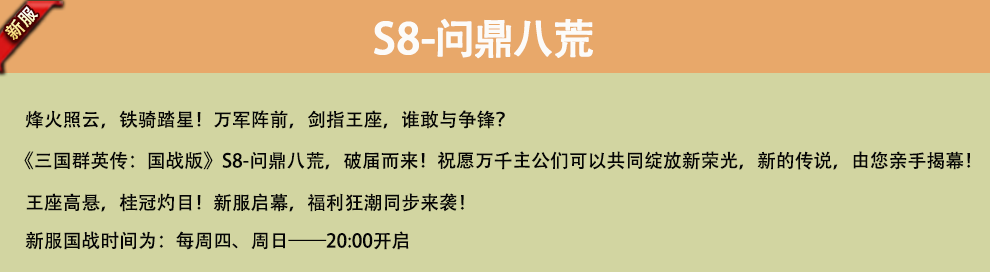 ※更多活动详情请主公们届时前往游戏活动页查看!再此预祝主公们能在新服大展宏图,横扫八荒!