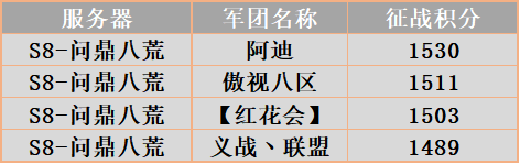 1、根据原有赛事规则,决出S8前四军团如下,同时以下军团进行S8最强军团角逐赛。现将新增赛制公告如下: