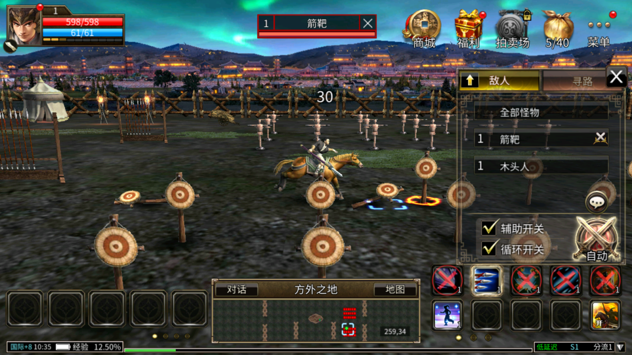 点击敌方角色/怪物,即可对指定目标进行攻击;点击技能键,即可对目标释放技能;点击技能栏上方的“自动”按钮即可自动选取攻击目标;点击“自动”左侧的小图标即可打开寻路/寻敌功能,在寻敌功能中点击目标,即可自动寻找该目标/该类怪物进行攻击。