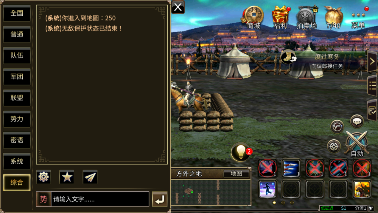点击小地图上方的“对话”按钮,即可打开对话框。主公可以在对话框中选择查看的频道,并点击对话框下方的输入框,输入文字并发言。