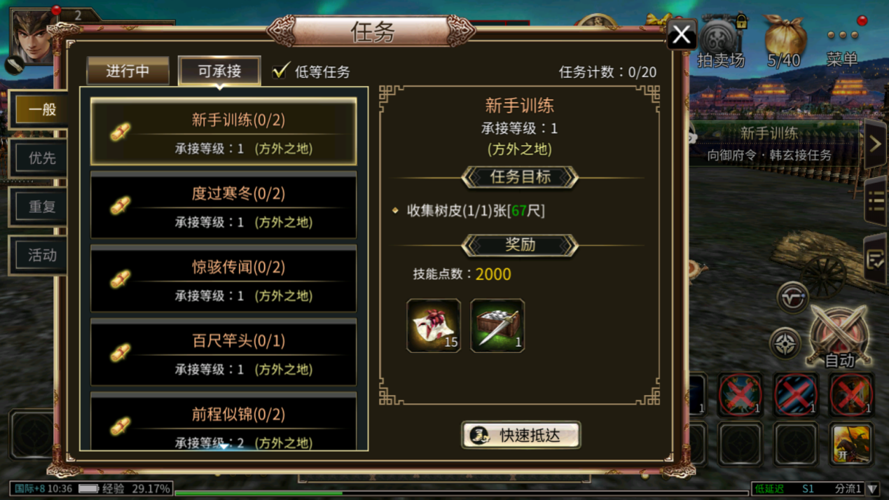 点击相关任务或在地图中点击目的地,角色即可直接自动寻路至目标地点。自动寻路完成任务时,可以点击对应任务左上角,使用“小飞鞋卷轴”直接传送至任务地点。完成任务时,自动寻路至任务地点后,会自动与任务NPC对话。