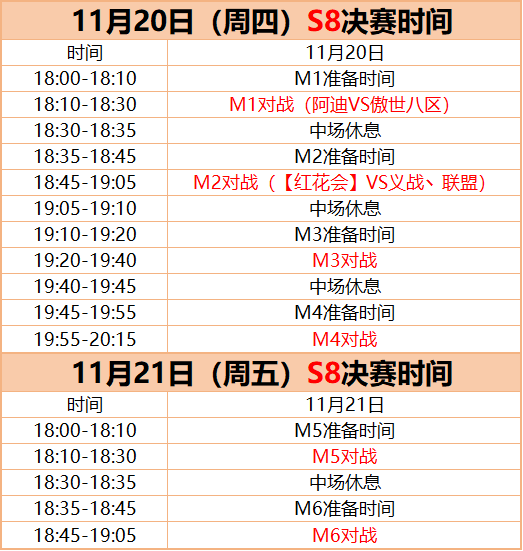 M5:M3入围S8决赛军团VS M4入围入围S8决赛军团,决出S8决赛第一名与第二名