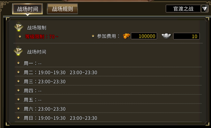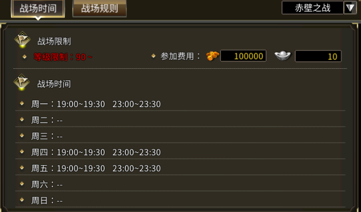游戏更新维护后,战役时间做出部分调整,具体时间如下: