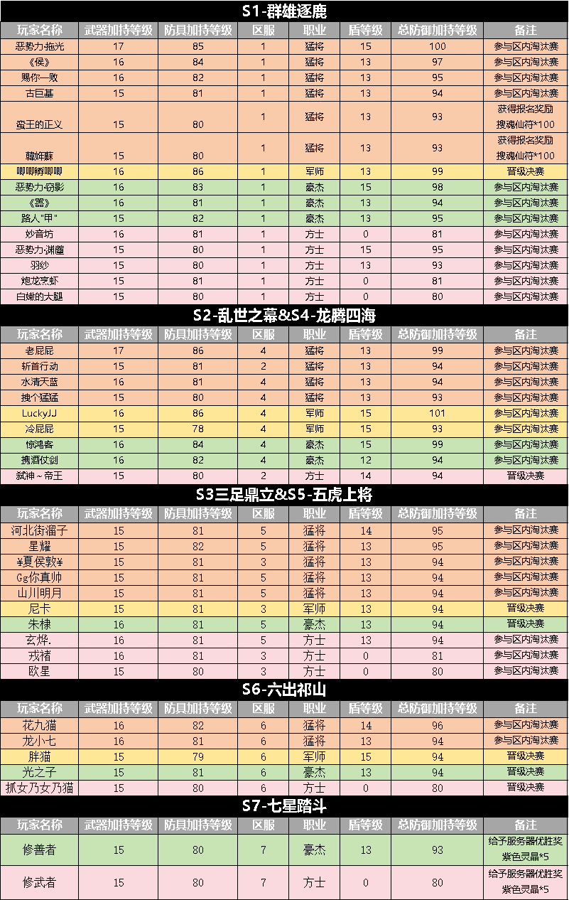 4、最终S1、S2&S4、S3&S5、S6区服各职业晋级的玩家将代表服务器,参与最终决赛
